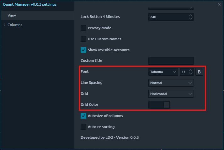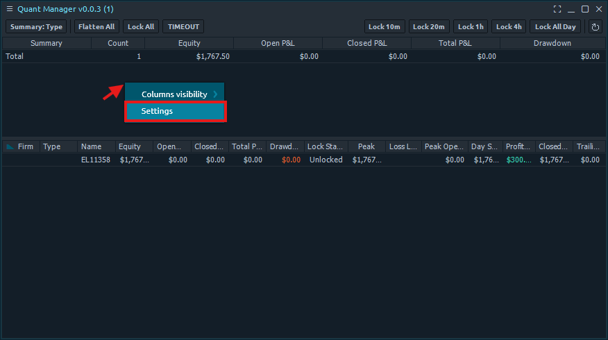 Click the three bars in the top left corner of the Quant Manager panel and select 'Settings'.