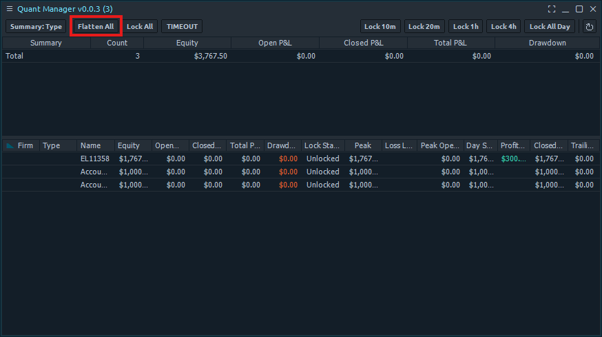 Click the 'Flatten All' button to flatten all of your accounts' open positions.