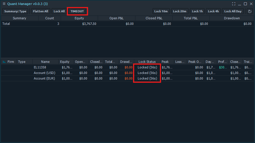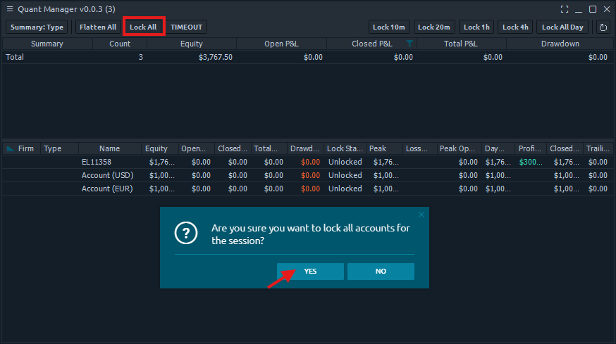Click the 'Lock All' button to lock all of your accounts for the rest of the session. You will be prompted to confirm before the action is applied.