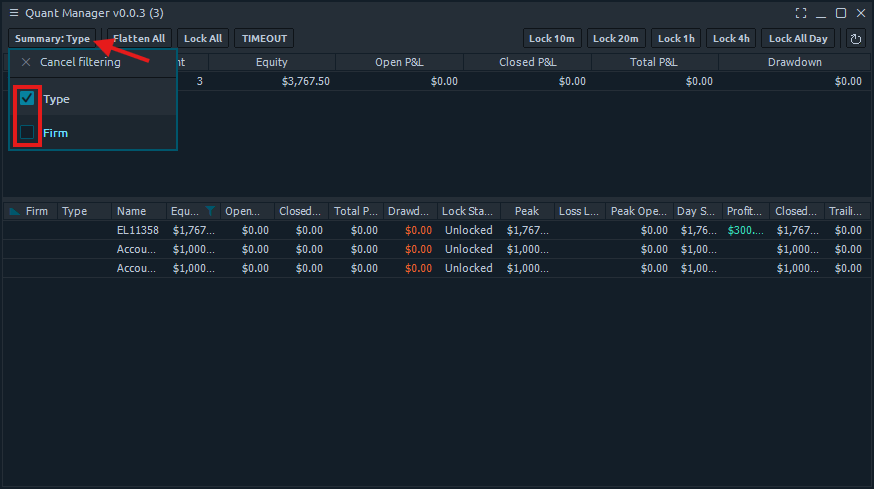 Learn about the toolbar buttons for sorting summaries, flattening positions, and locking accounts.