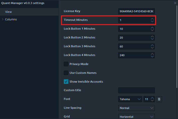 Click the three bars in the top left corner of the Quant Manager panel and select 'Settings'.